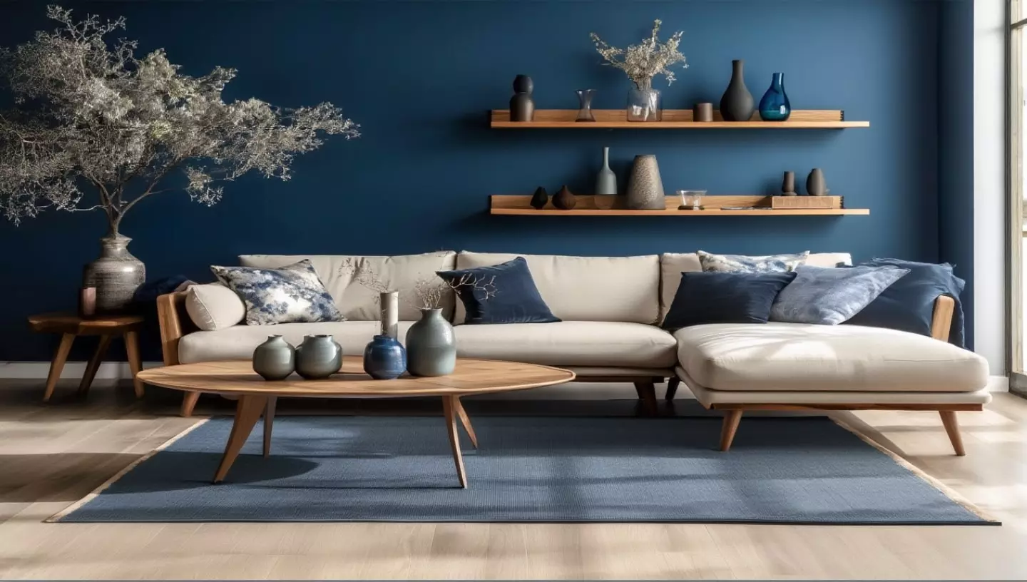 Éclairage — Privilégiez un éclairage blanc chaud pour accentuer la profondeur du bleu et les nuances du tissage.