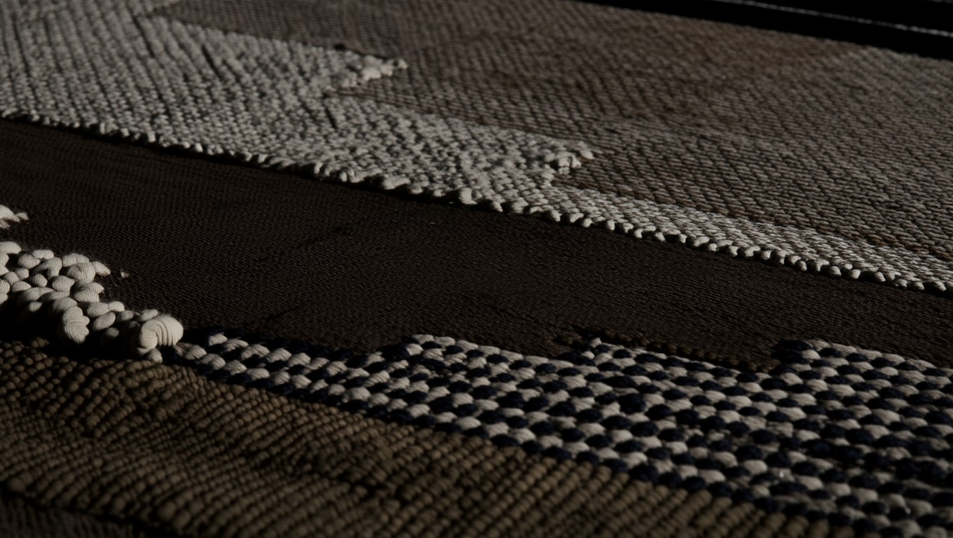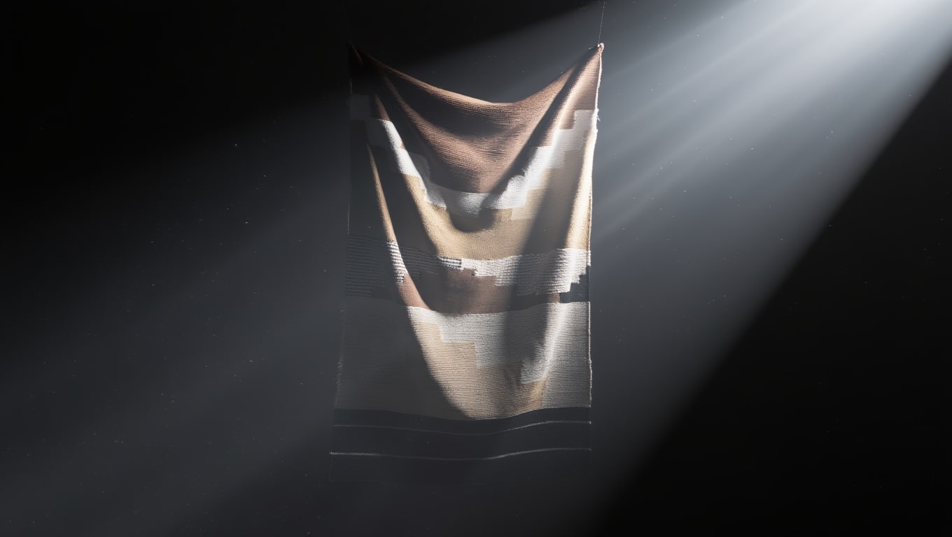 Éclairage — Lumière chaude diffuse pour souligner la trame du tissage et adoucir les contrastes.