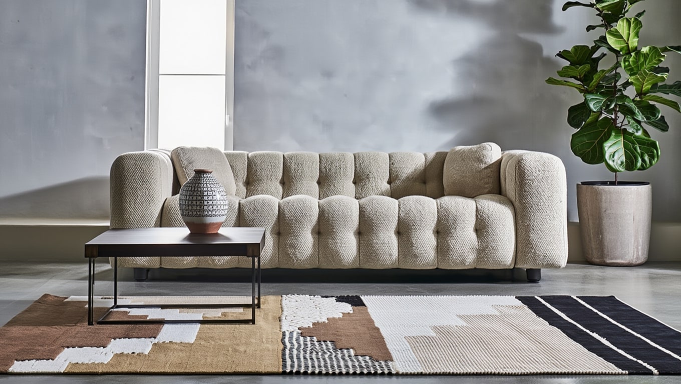 Placement — Positionnez-le sous une table basse ou en avant d’un canapé 2 places pour cadrer la zone de vie.