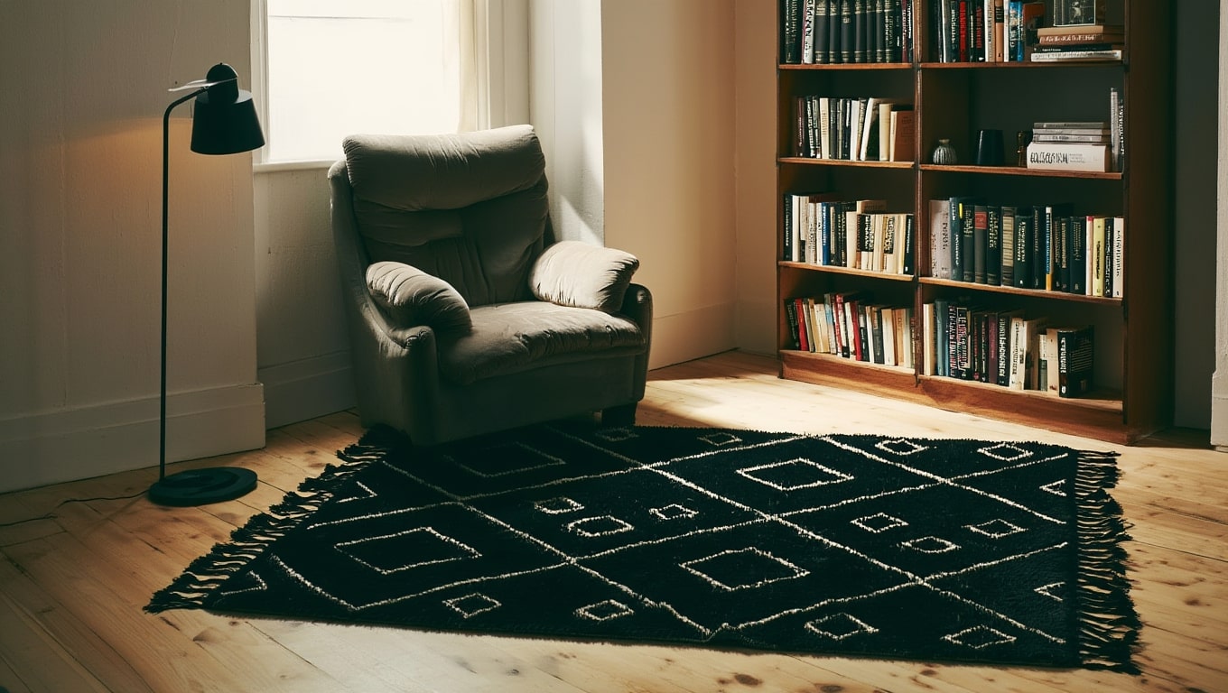 Placement — Placez-le sous une table basse claire ou un fauteuil texturé pour faire ressortir le contraste.