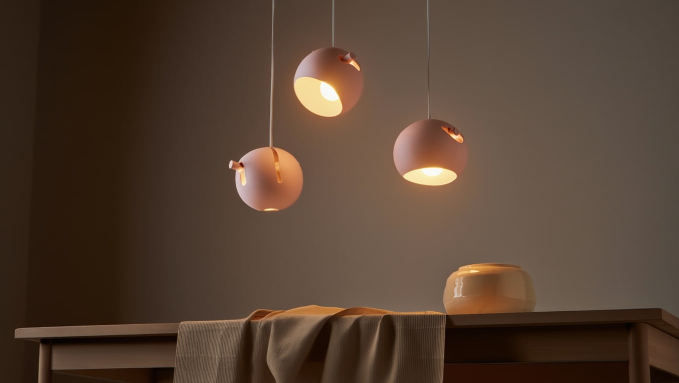 Lysa aligne trois coques mates pour une lumière douce et régulière. La suspension métal éclaire le repas sans éblouir et calme le volume de la pièce. La teinte rose terre réchauffe visuellement le plateau noir comme le bois clair. Le dessin sobre met l’accent sur l’équilibre et la continuité de ligne. Format compact facile à placer au-dessus d’une table ou d’un plan. Un choix naturel en ambiance Scandinavian Warm.
