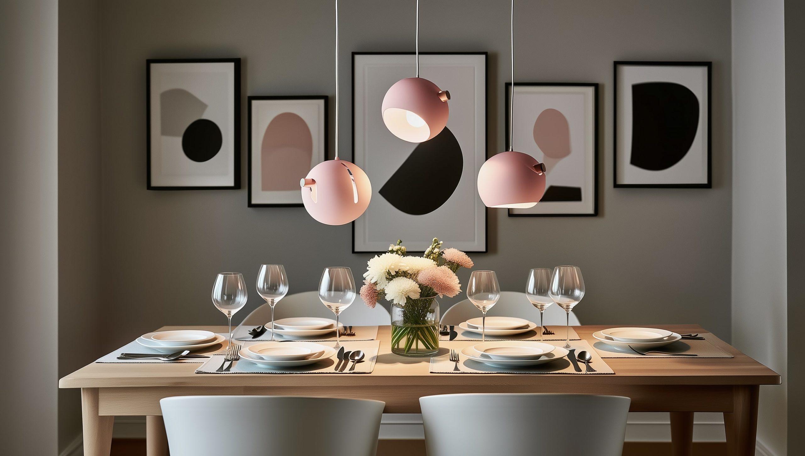 Placement — 70–80 cm entre le bas des dômes et le plateau ; centrez sur l’axe de la table.