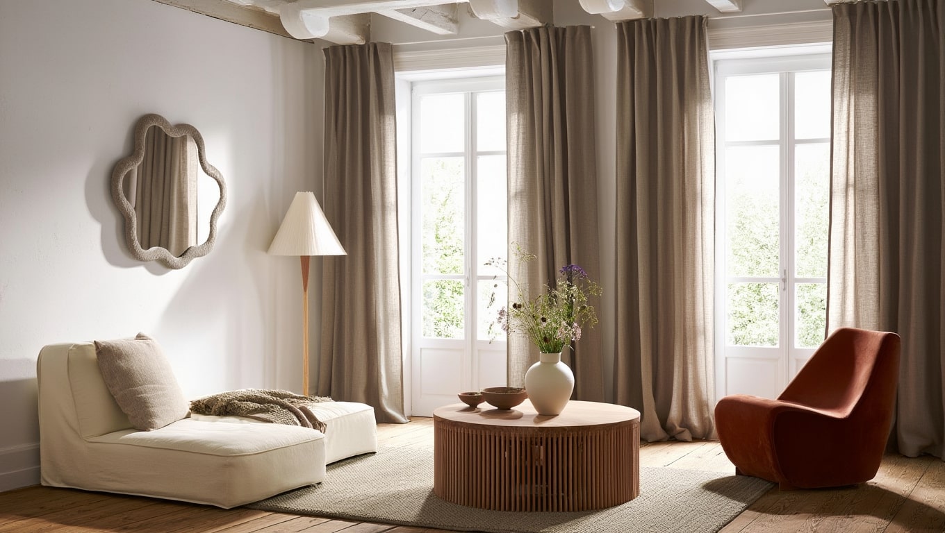 Meli est un miroir mural aux courbes organiques qui adoucit immédiatement la géométrie du mur. Son cadre en textile bouclé dessine une silhouette ondulée qui attire le regard sans l’éblouir. Suspendu dans une entrée, un salon ou une chambre, il reflète la lumière et donne une impression de profondeur douce. Sa dimension de 70 × 70 cm reste facile à placer au-dessus d’une console, d’un buffet ou d’un banc. Utilisé seul ou en composition avec d’autres éléments muraux, il installe une atmosphère Organic Modern calme et enveloppante.