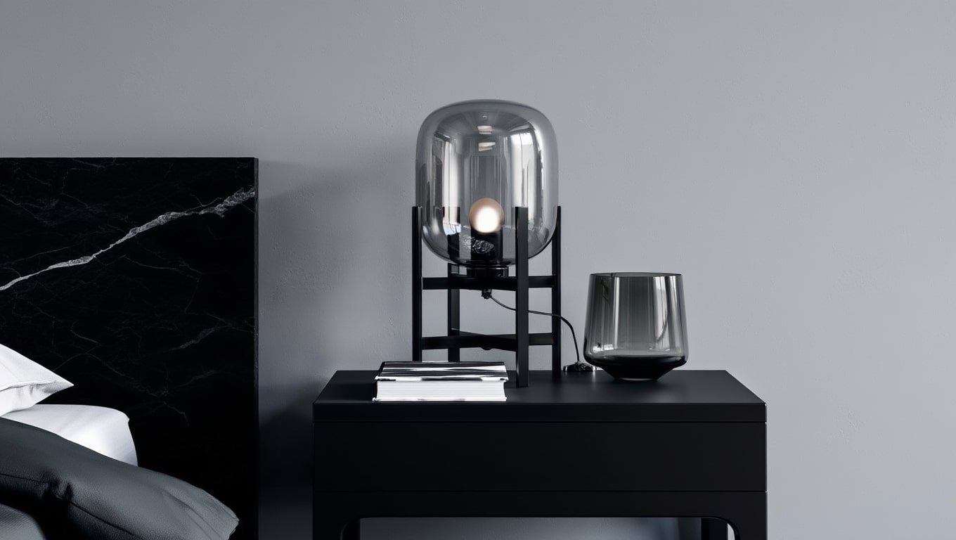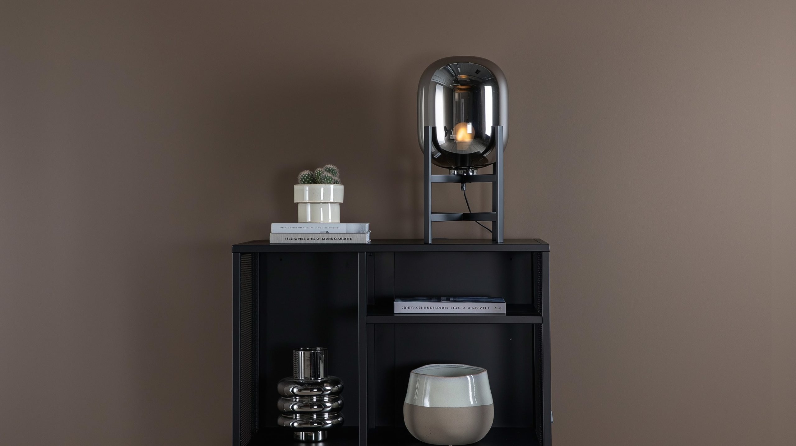 Dôme en verre miroir sur cadre fin. Milo crée un accent graphique et une lumière d’appoint compacte pour console, bureau ou entrée, sans éblouir.