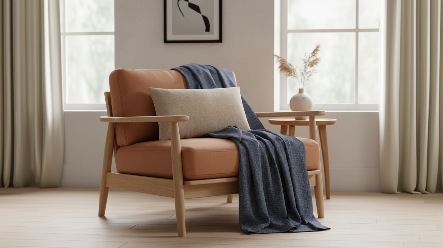 Placement — Placez Minayra au centre d’un canapé 3 places pour ancrer la ligne et offrir un soutien confortable, puis ajoutez un second coussin en bout d’assise pour équilibrer le volume. Sur un fauteuil profond, utilisez-le en soutien lombaire pour redresser légèrement la posture tout en gardant une impression de cocon. Sur un lit, disposez-le devant les oreillers pour tracer une première strate horizontale qui donne du relief sans surcharger la tête de lit.
