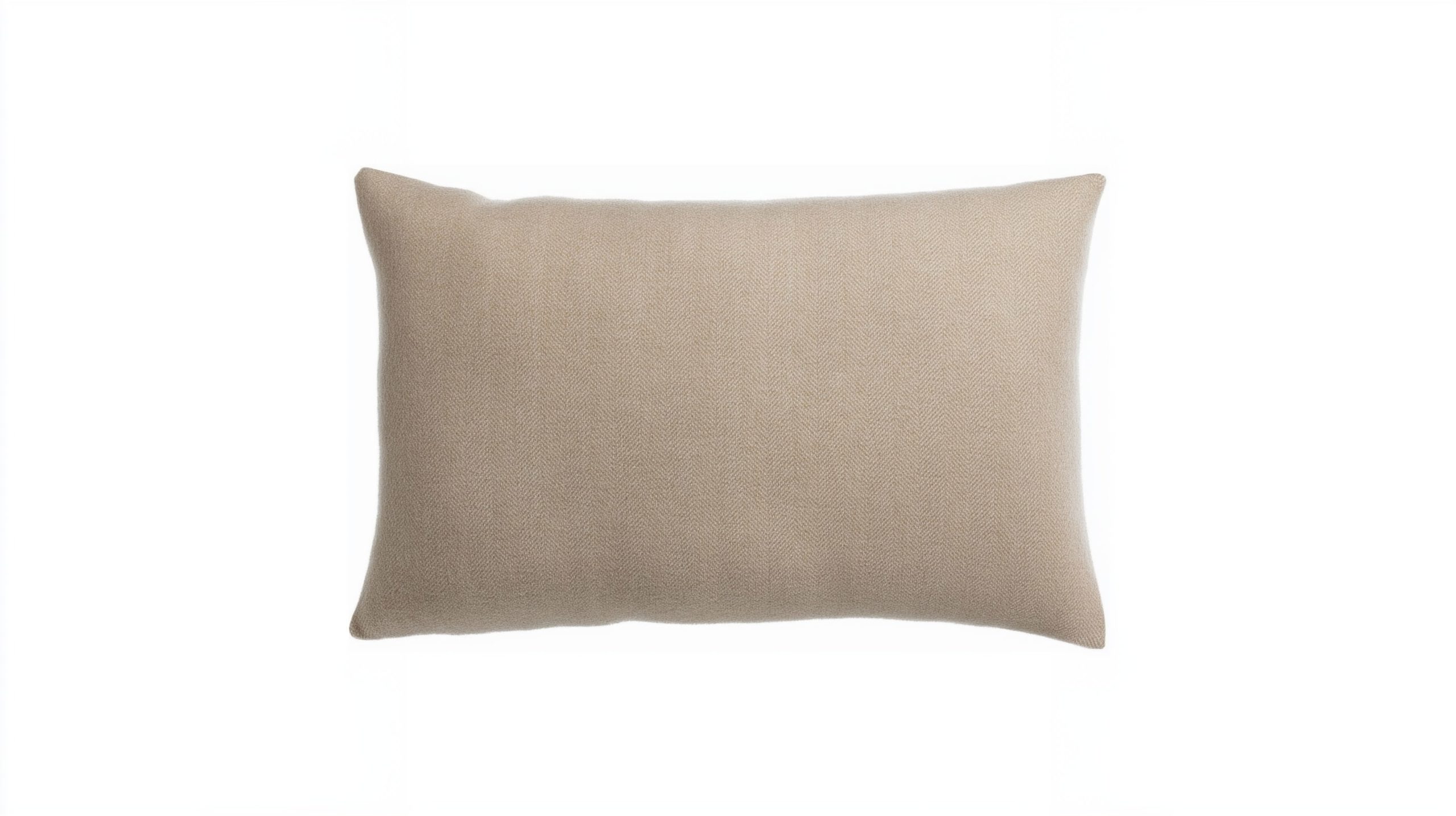 Coussin rectangulaire 40×65 en laine mérinos et cachemire, nuance beige nuageux, qui adoucit un canapé Japandi et crée une assise ultra calme.