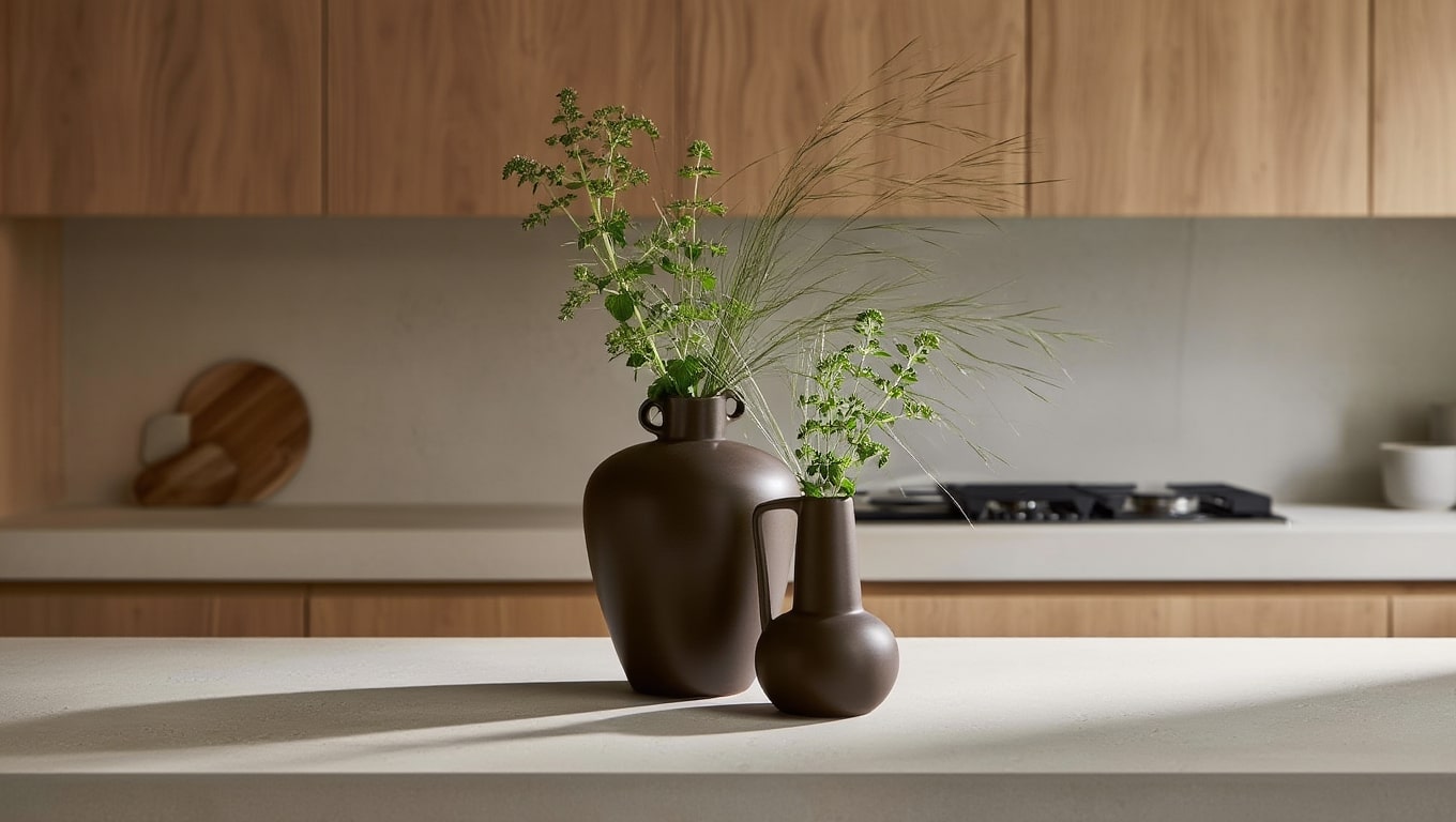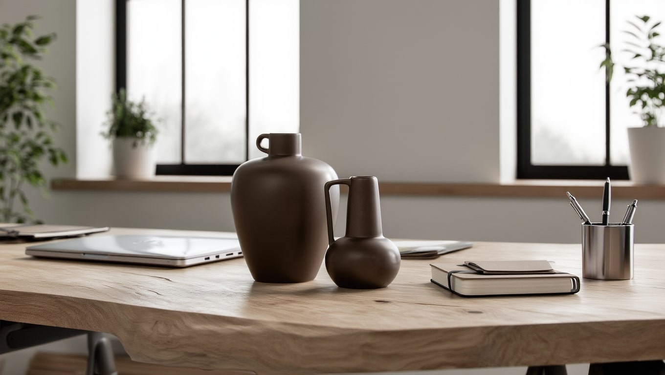 Associations matière — Associez ces vases à un plateau en bois chaud, des éléments en métal brossé et quelques pièces en verre fumé ; évitez les surfaces très brillantes pour garder le registre Organic Modern.