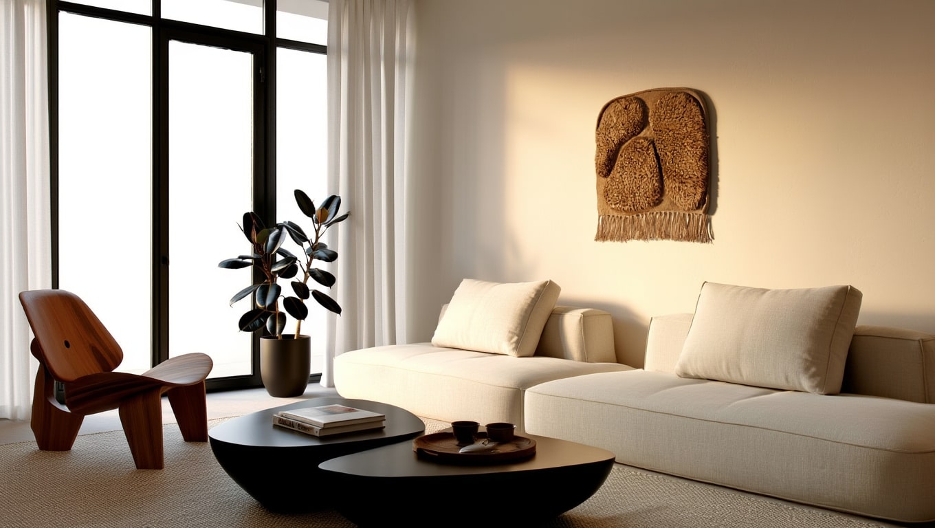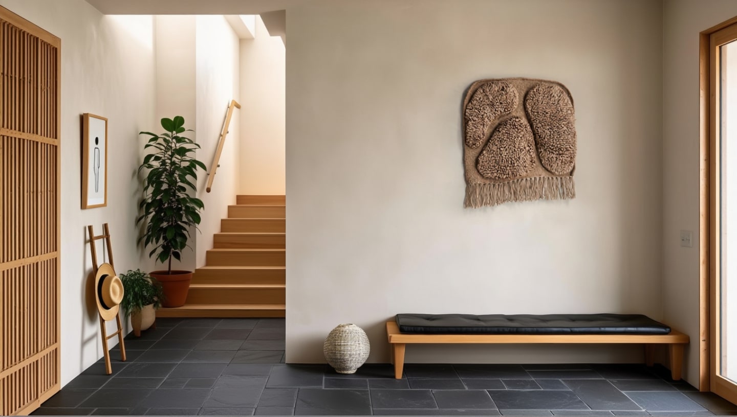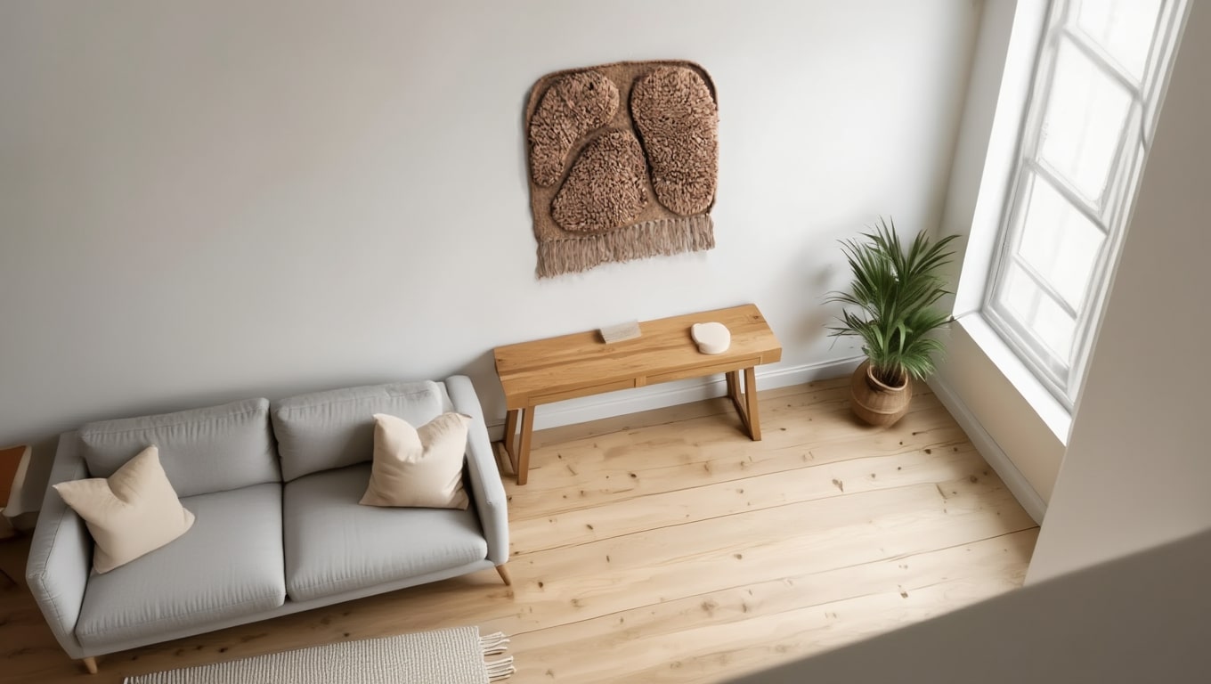 Éclairage — Privilégiez une lumière rasante issue d’une applique ou d’un lampadaire décalé, afin de souligner les formes et de créer des ombres souples sans éclat direct.