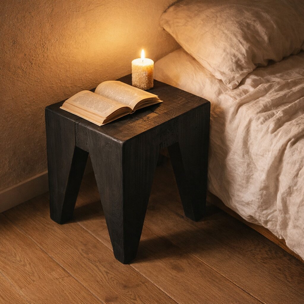 L’esthétique brute et chaleureuse de Surat s’accorde naturellement avec les intérieurs d’inspiration japandi ou rustique, où les matériaux authentiques et les lignes simples priment. Disponible en finition naturelle ou noire, cette table d’appoint artisanale en pin recyclé s’adapte à des palettes variées et apporte une touche de vécu et de sincérité à chaque pièce dans laquelle elle prend place.