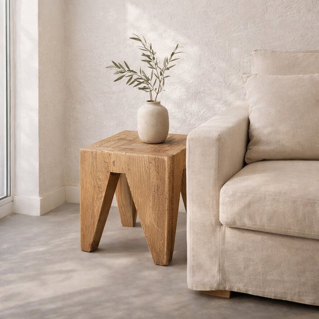 Compacte avec ses dimensions de 35 × 35 × 40 cm, cette table d’appoint en bois style rustique s’intègre aisément dans les espaces restreints sans encombrer la circulation. Surat se prête à de multiples usages : bout de canapé pour poser une tasse ou une télécommande, table de chevet improvisée, ou socle décoratif pour mettre en valeur un vase ou une plante. Cette polyvalence en fait un élément discret mais essentiel du quotidien.