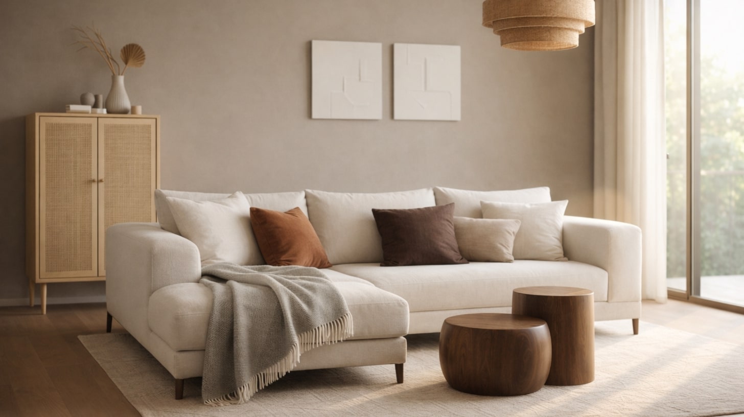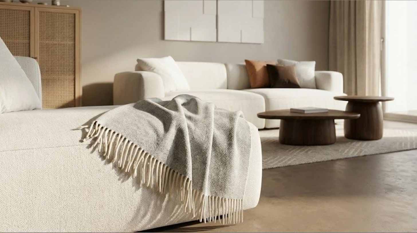 Placement — Drapez Taiki sur l’accoudoir d’un canapé bas pour une ligne calme, ou pliez-le en bout de lit pour structurer la chambre sans surcharge.