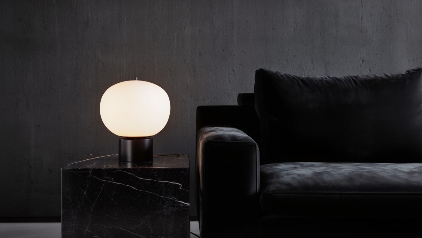 Globe opalin posé sur un socle noir, Lior diffuse une lueur douce pour le chevet ou l’étagère. Une lampe de table verre au dessin sobre, facile à associer.