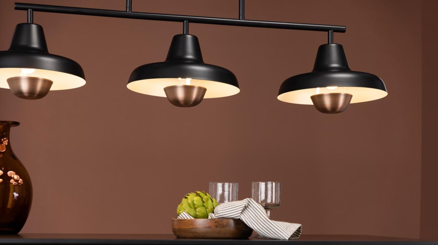 Ziv étire une ligne nette au-dessus de la table et rythme l’espace sans l’alourdir. La suspension métal aligne trois dômes pour un éclairage régulier et confortable. Le dessin linéaire cadre la scène et guide le regard. À 48 cm de hauteur, la silhouette reste visuelle tout en restant discrète. Les abat-jour de 30 cm diffusent un halo doux qui convient au repas comme à l’accueil. Une pièce évidente pour un décor Urban Graphic.